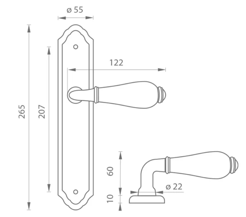 Štítová kľučka na interiérové dvere s oválnym štítom je vyrobená z kvalitnej zliatiny zinku v kombinácii s porcelánom a je povrchovo upravená.